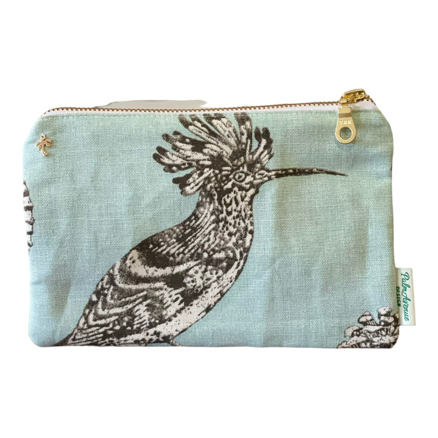 Zipped Clutch Bag - Fabric is a Sanderson print featuring shells, feathers, dragonflies, beetles, palm trees and butterflies - beautifully lined - Blue or Yellow