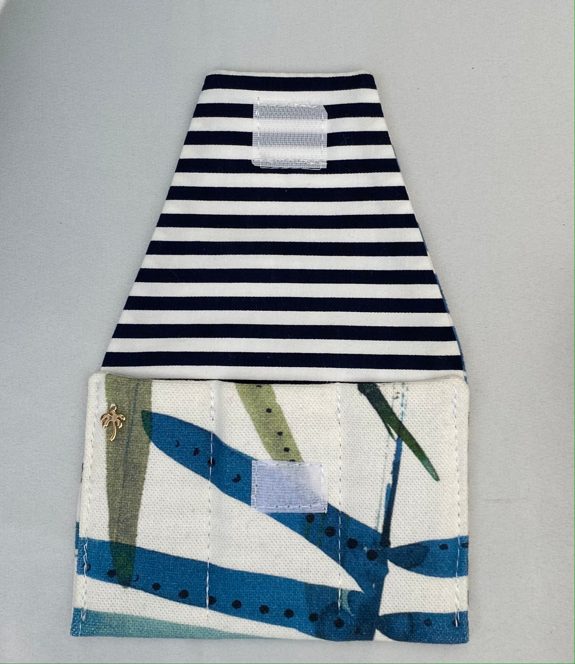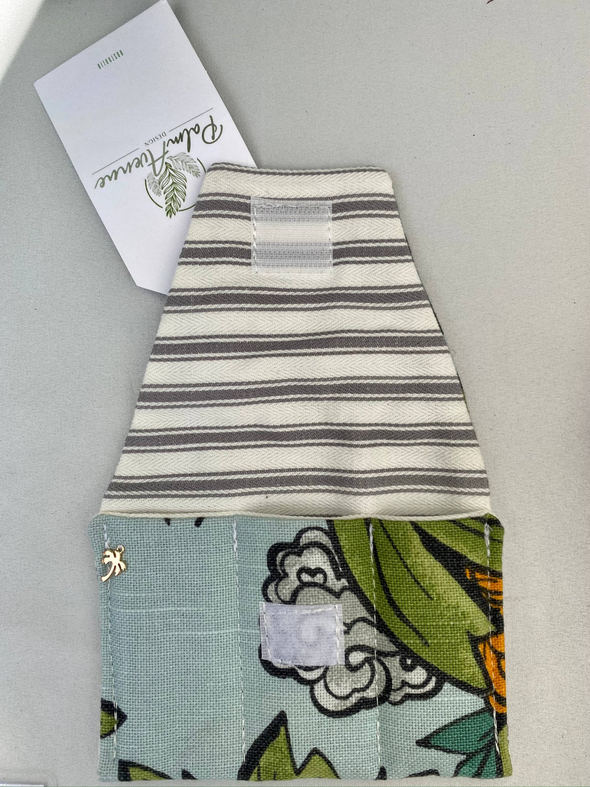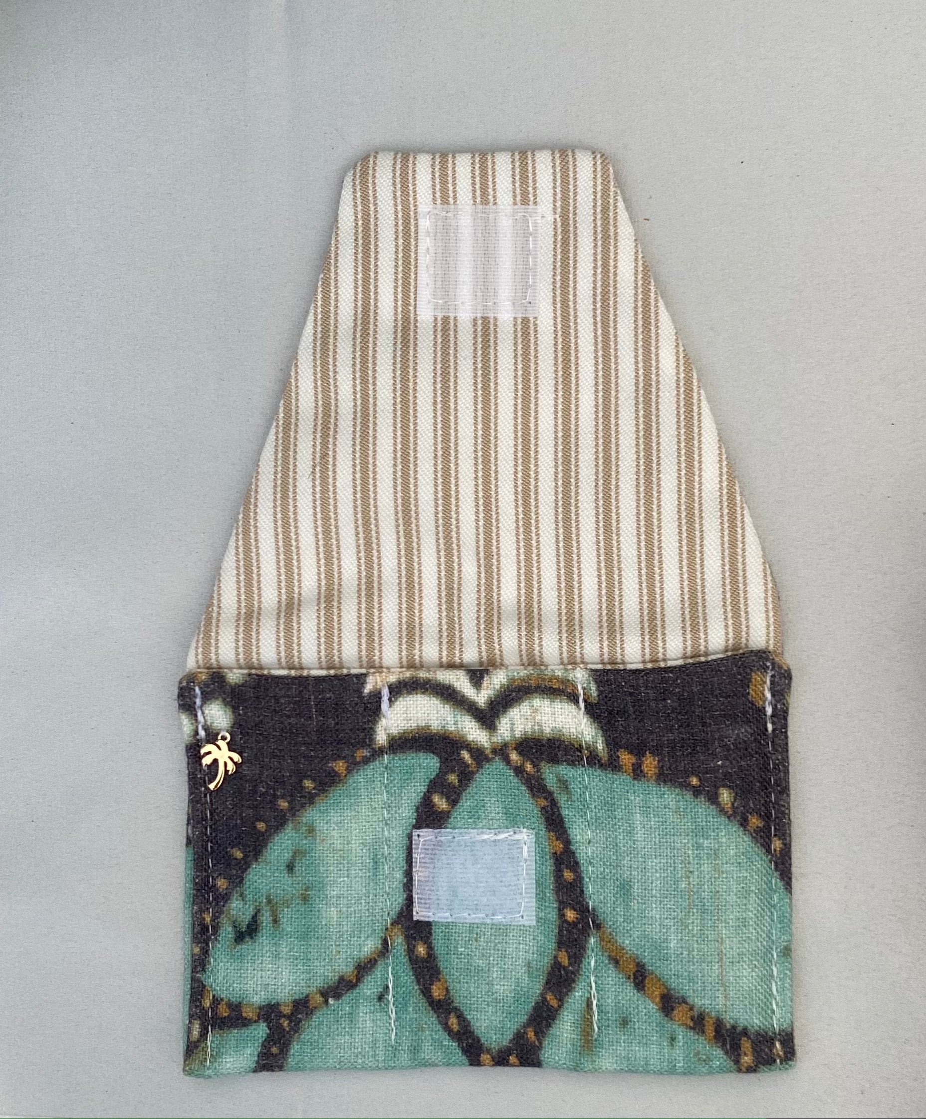 A neatly sewn square of velcro seals the envelope closed