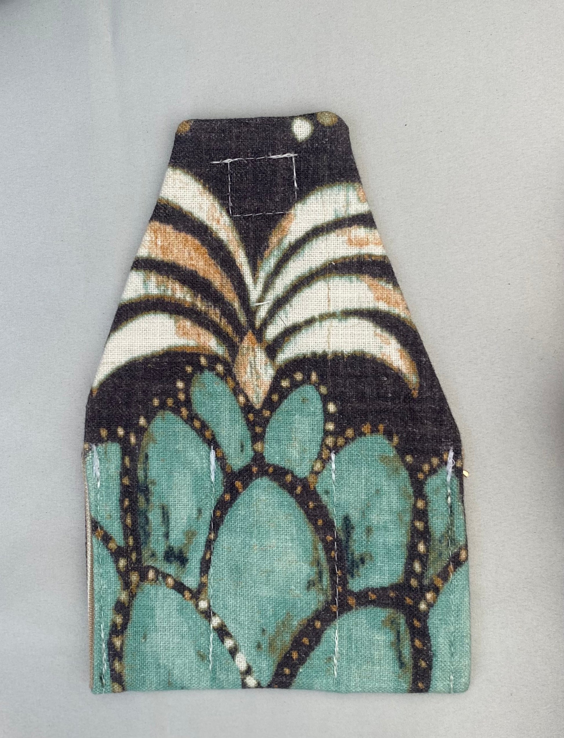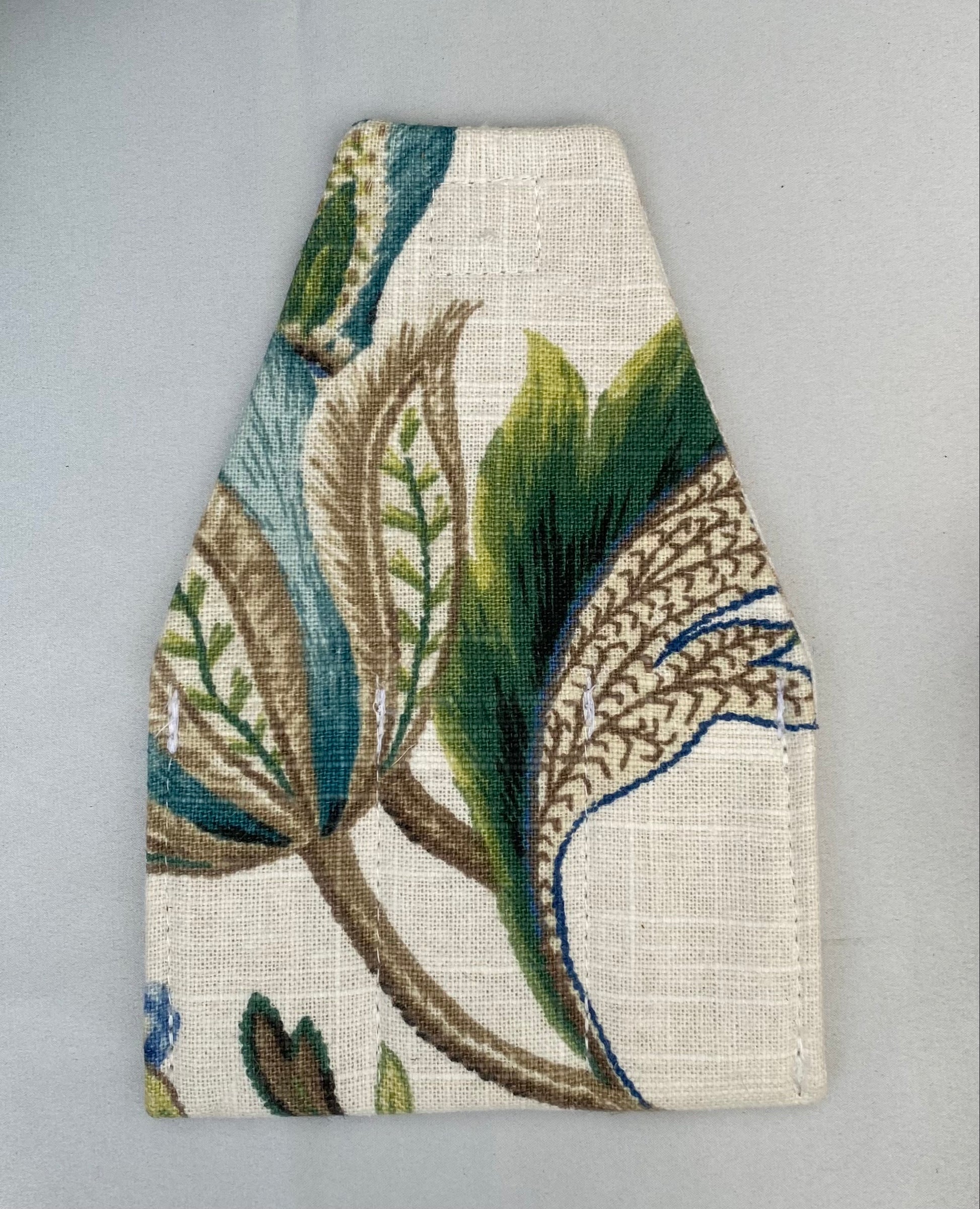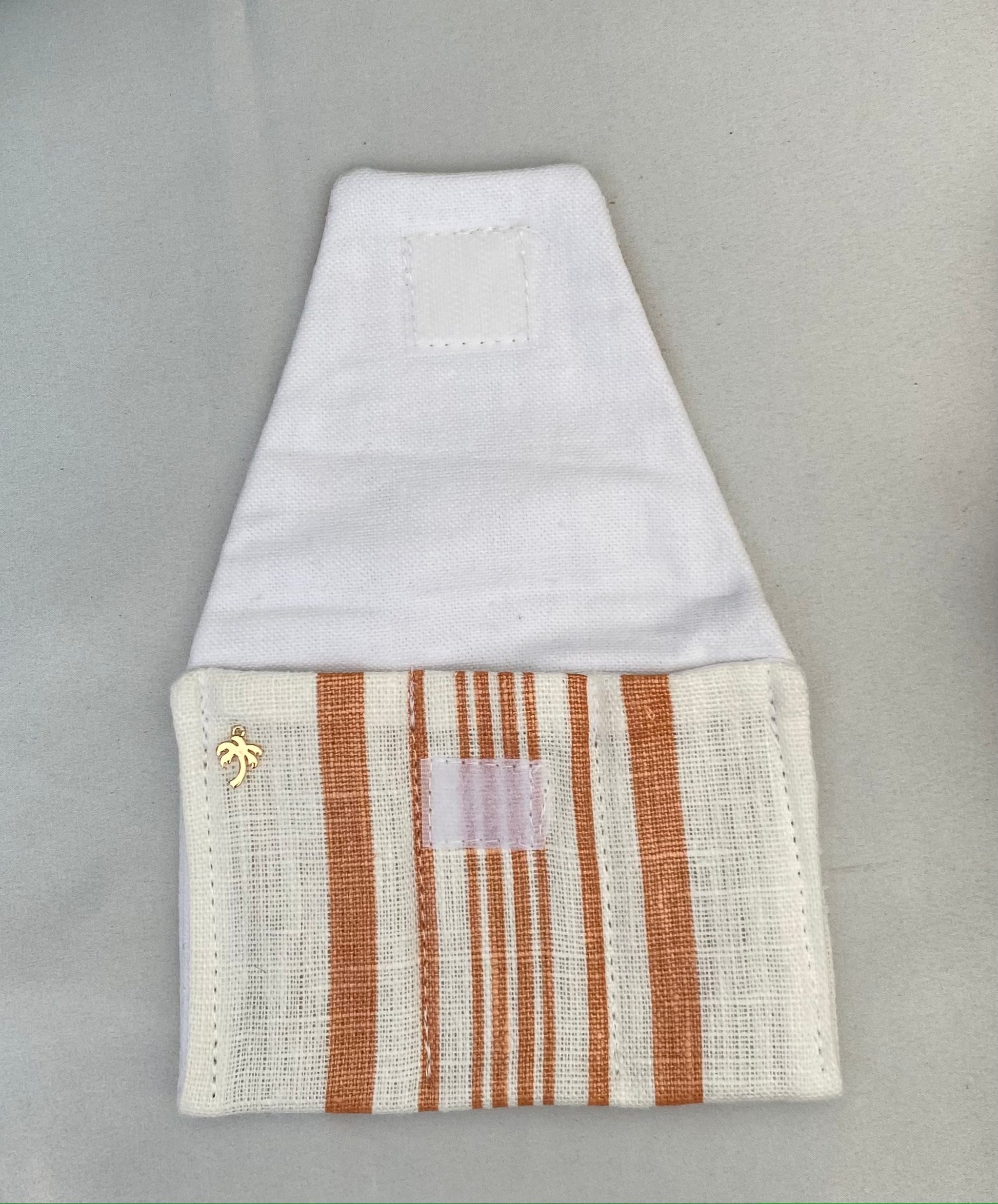 A neatly sewn square of velcro seals the envelope closed