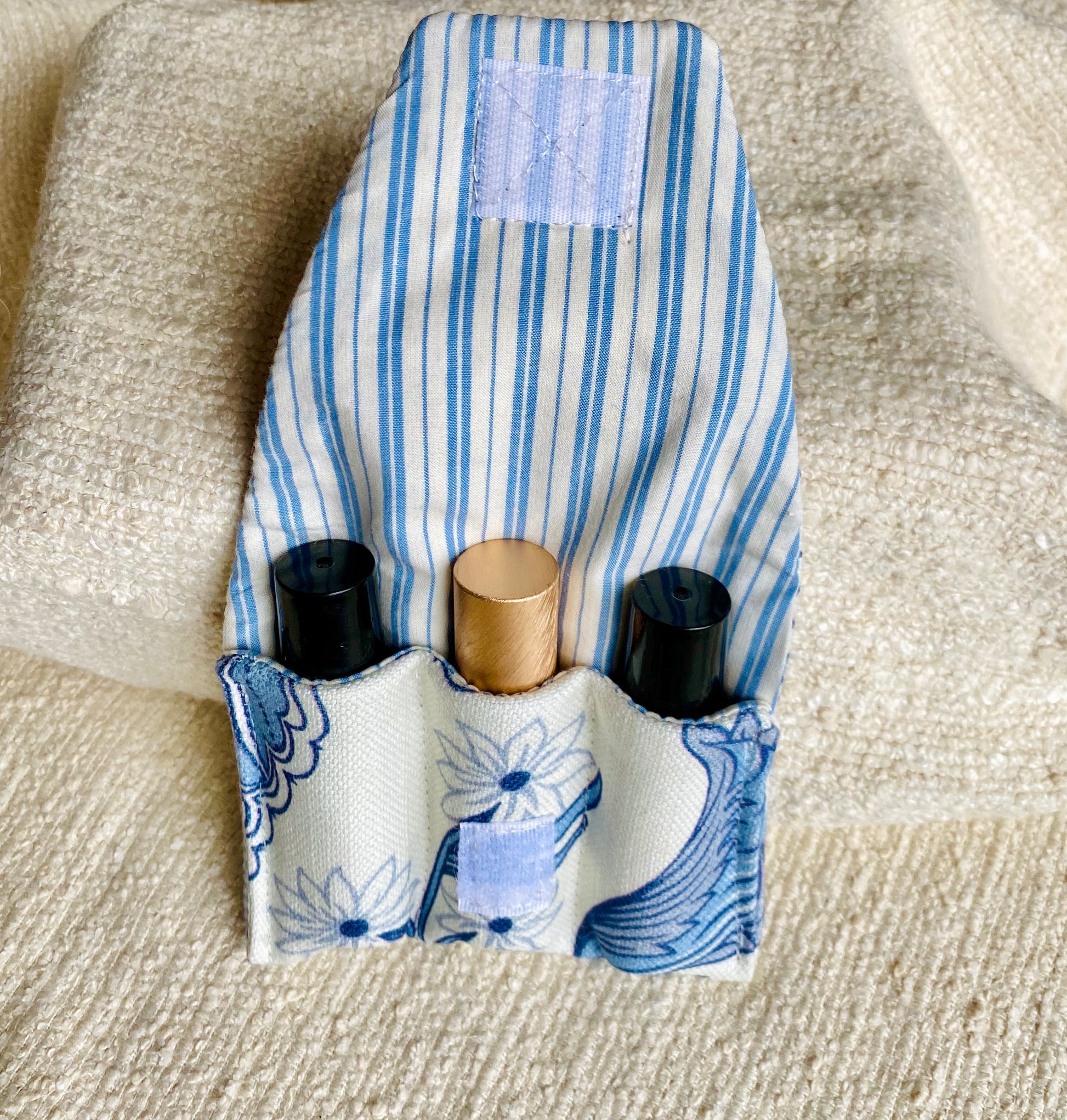 With three individually sewn pockets, It will hold 3 x10ml roller bottles